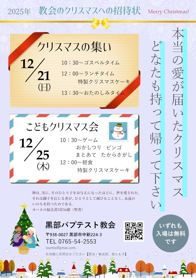 Kurobe Baptist Chrch 教会のホームページへようこそ!